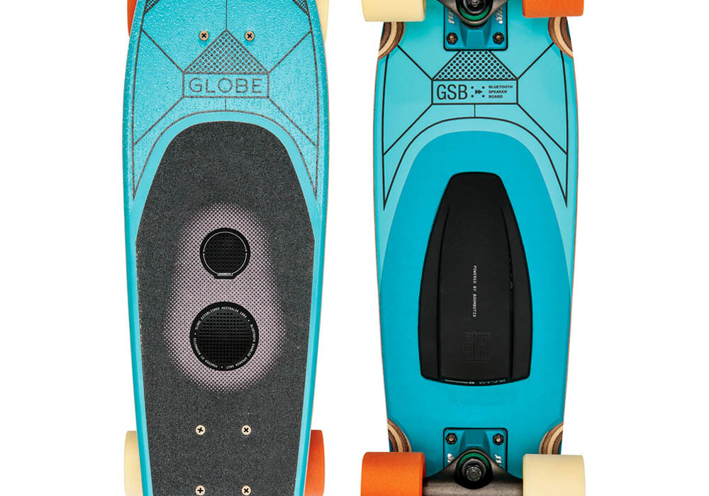 As Gitlin, Globe Skateboards designer states, “The GSB skateboards are designed to eliminate the isolating experience of skating with headphones and they allow you to share the tunes out loud with your friends.”